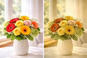 また、目に入る光の量が減ることで、全体的に色が暗く感じられたり、似た色の区別がしにくくなったりすることも少なくありません。こうした変化はゆっくりと進むため、自分ではなかなか気づきにくいのが大きな特徴。誰にでも起こる自然な現象だからこそ、相手の「見え方」にもそっと心を寄せてみることが大切です。そうして選んだ花は、花の美しさとともに、あなたの温かな思いやりまで真っ直ぐに届けてくれます。